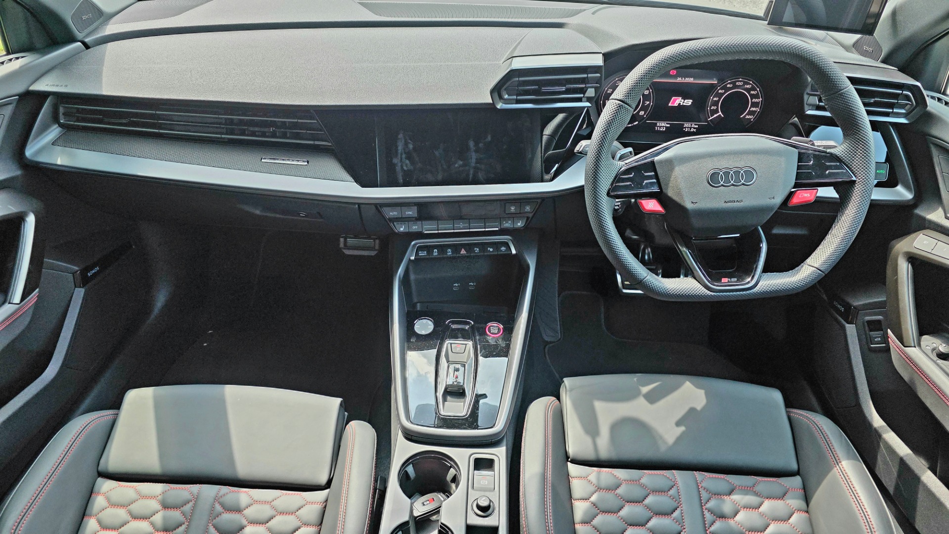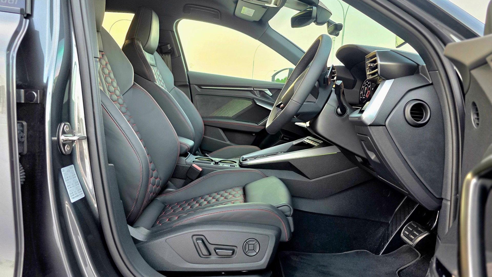 Step inside, and the RS3 strikes a balance between performance-focused design and everyday usability. The Nappa leather bucket seats are immediately noticeable—they provide excellent lateral support, keeping you firmly in place during spirited driving, while still being comfortable enough for daily use.