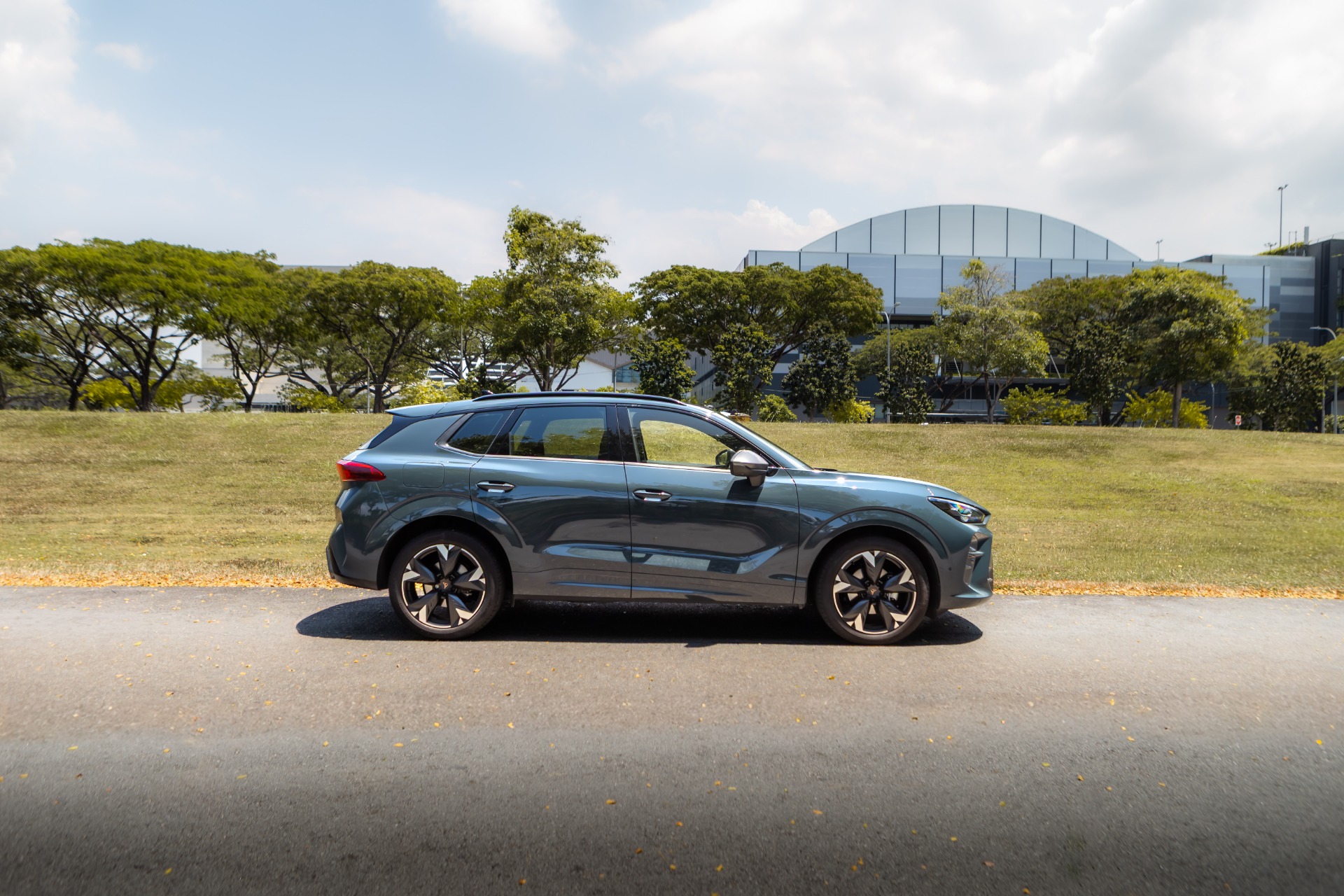 The side profile is where the Terramar's design maturity becomes most apparent. A gently sloping roofline introduces a coupe-like silhouette, but it is executed with restraint, ensuring that rear headroom remains practical. Strong character lines run along the length of the car, creating tension and depth across the bodywork. A defined shoulder line stretches cleanly from front to rear, while softer sculpting along the lower doors prevents the design from feeling overly rigid.