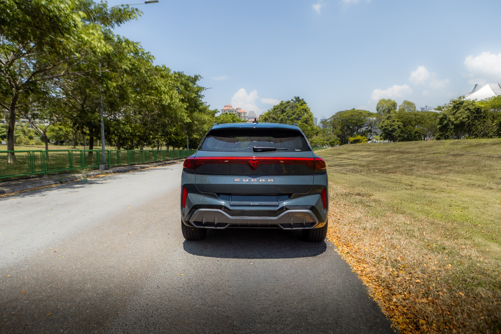 At the rear, the design becomes even more distinctive. A full-width LED light bar integrates seamlessly with the tail lamps, creating a clean and modern visual signature. The illuminated CUPRA badge sits proudly at the centre, reinforcing brand identity, especially at night. The rear bumper is sculpted with a diffuser-inspired finish, adding a sporty touch without appearing excessive.
