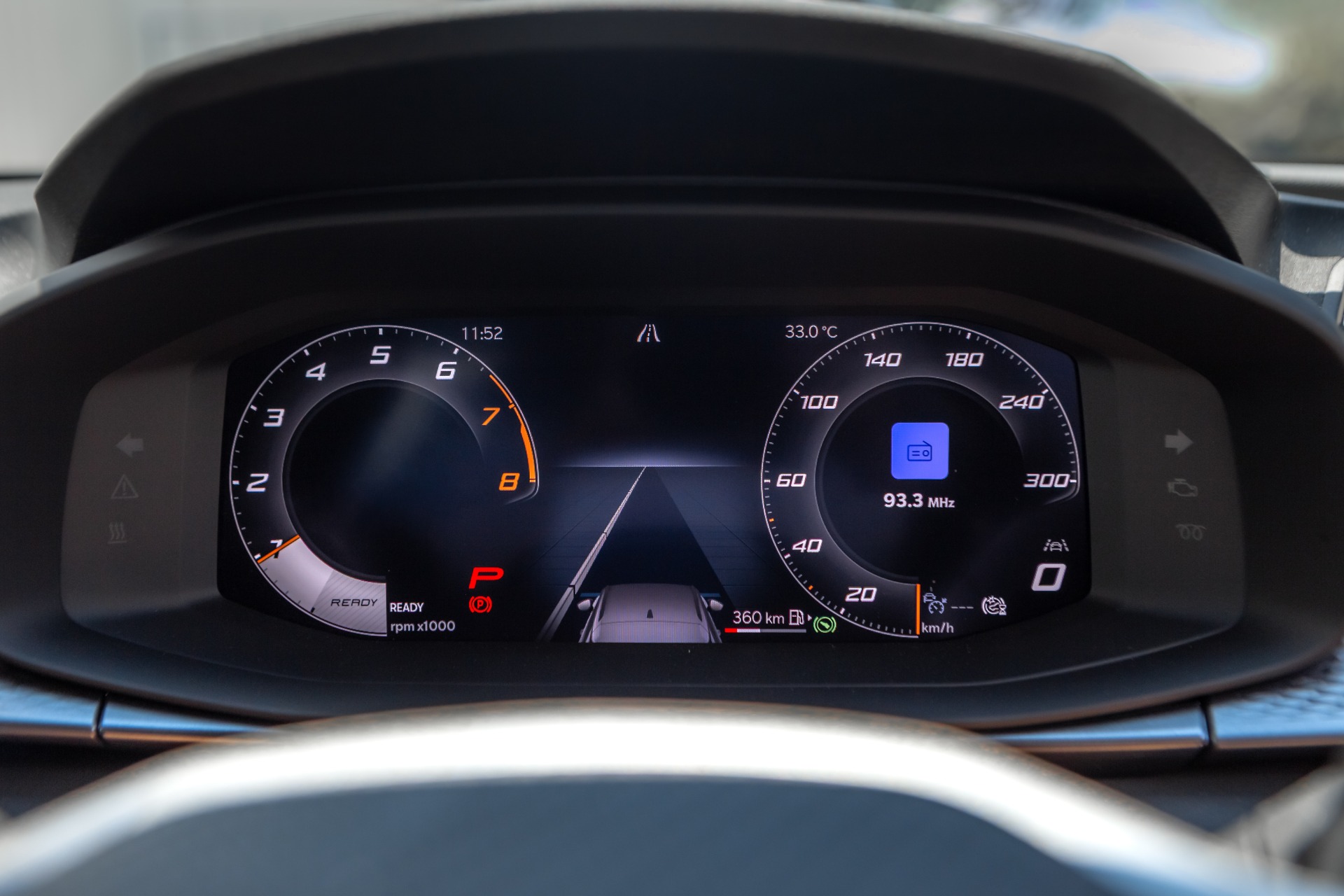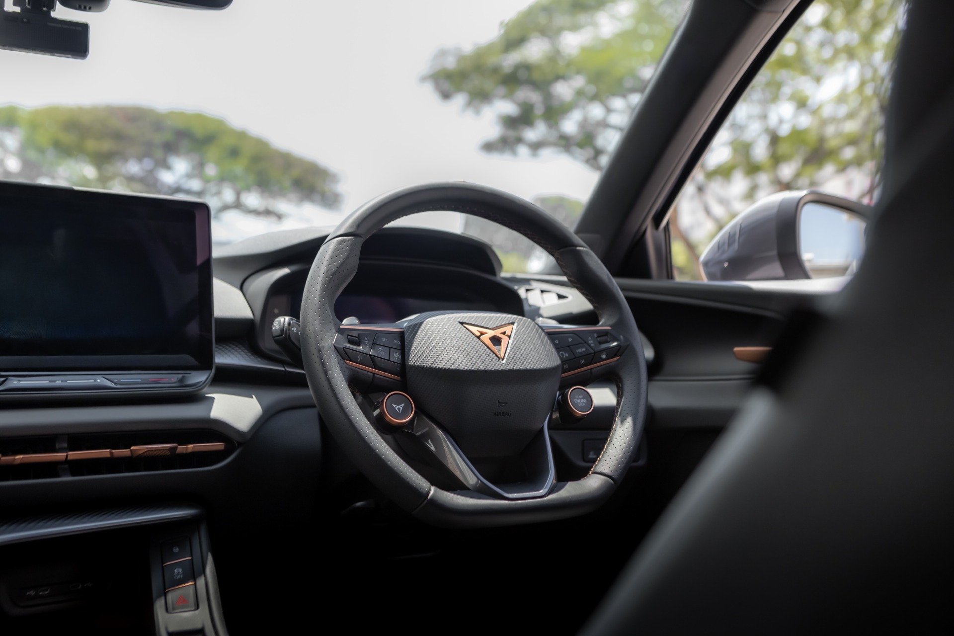 The suspension setup leans towards the firmer side, which contributes to its stability and cornering ability but can result in a slightly bumpy ride at the rear over uneven surfaces. Engaging the CUPRA drive mode via the steering-mounted button sharpens the car's responses and adds a more engaging feel, reinforcing its sporty character. Reverse sensors are notably sensitive, occasionally reacting more eagerly than expected.