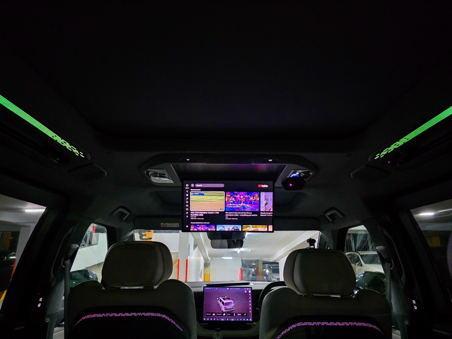 The centrepiece is a large, crisp infotainment display, powered by Zeekr's intelligent assistant. The interface is sharp and responsive, reinforcing the car's tech-forward identity. Rear passengers aren't left out either, with a 17-inch 3K OLED roof-mounted screen that serves both second and third-row occupants with it's entertainment options such as Youtube!